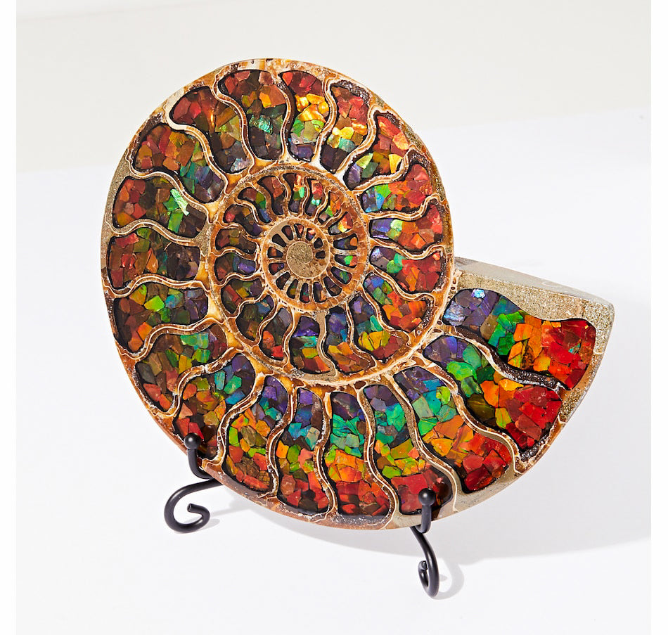 For centuries, Feng Shui masters and energy healers have revered Ammolite as powerful vessels of universal knowledge and energy. Their natural spiral formation mirrors the Fibonacci sequence, often called the golden spiral — a shape that echoes the very pathways along which the forces of the universe are believed to flow. Within each inner whorl, energy is thought to be gathered and then released outward in a centrifugal motion, radiating harmony and vitality to its surroundings.